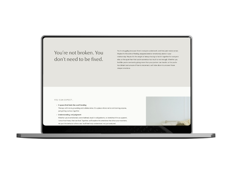 This is for you! We’ll help you visually communicate the identity of your practice—not just your personal brand. You’ll also receive complimentary access to our Group Practice Add-On Package to make it easy to adapt your site for your team.